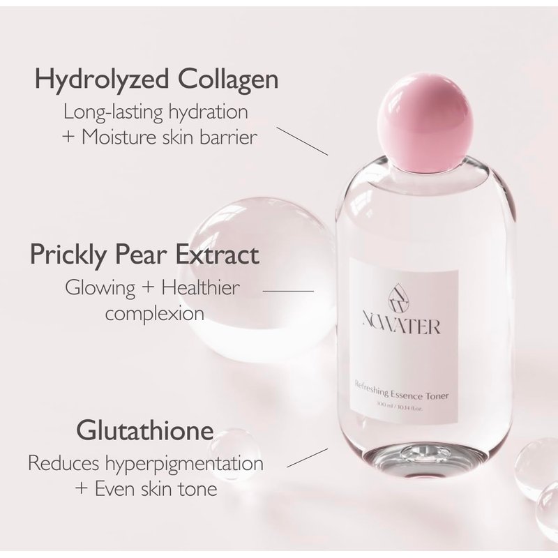 NOWATER Refreshing Essence Toner | Hydrating Facial Toner | Glass Skin Barrier | Hydrolyzed Collagen, Niacinamide, Glutathione | Korean Skin Care for Face (10.14 fl.oz)