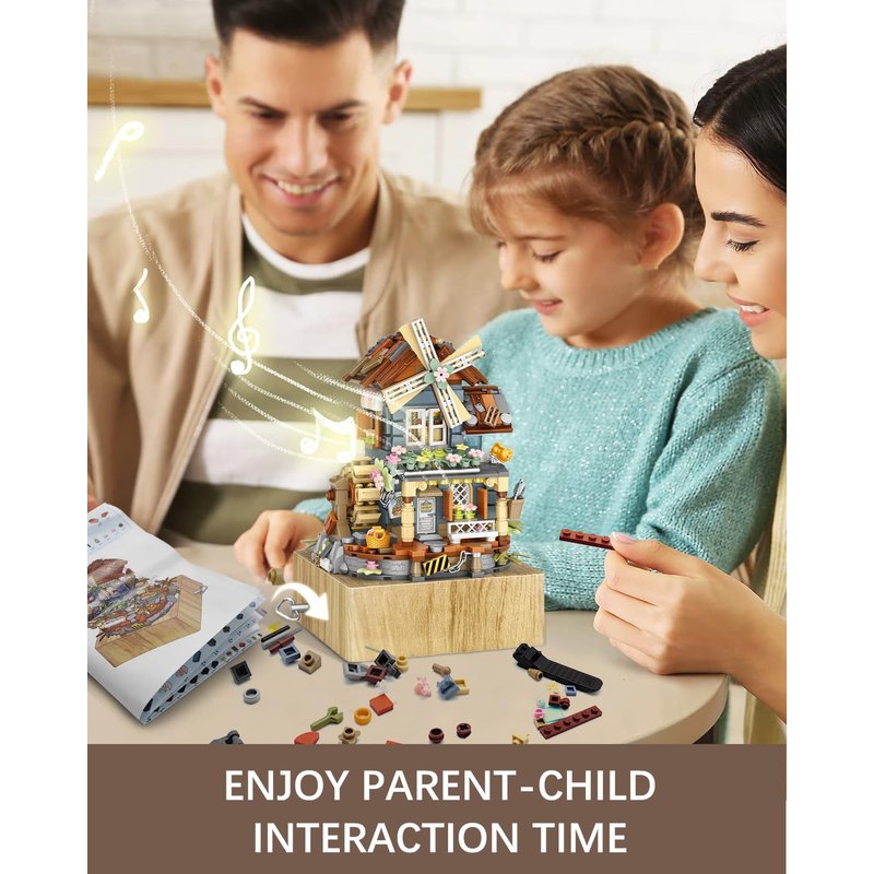 noziaa Music Box Building Blocks Set, Japanese Rustic Style Windmill House Toy Set, Mini Farm House MOC Creative Model, Gifts Idea for Kids Adults, Mini Blocks 799pcs (1239)