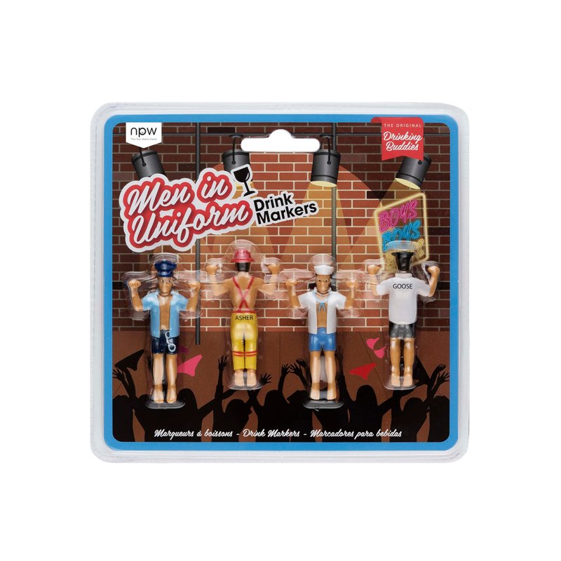 NPW Novelty Drink Glass Markers - Men in Uniform, Set of 4