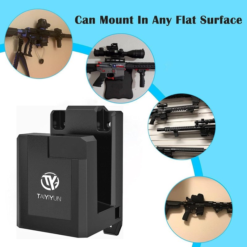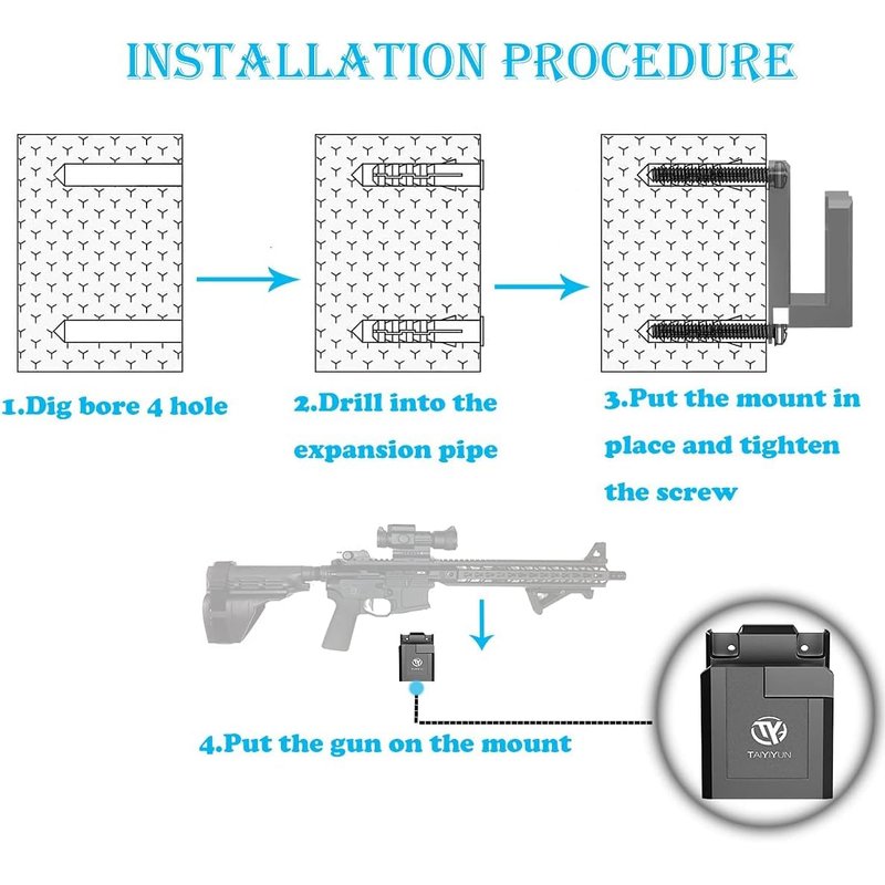 - Easy to install the wall mount to the wall,Just place the gun mount on the right position, and screw it to the wall. It's a great space-saving storage solution for you. It is convenient for you to mount the gun in and out from this ar wall mount.