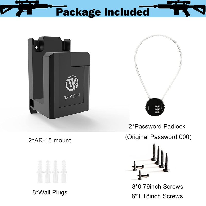 - High quality fit and finish show off gun with both style and safety. AR 15 wall mount package included: 1 X AR 15 wall mount, 4 X Screws,4 X Wall Plugs.