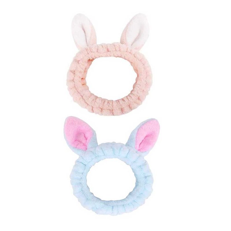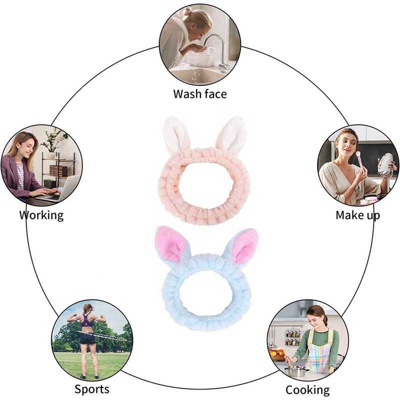 NT-ling 2 PACK Wash Headband, Bunny SPA Skin Care Hairlace, Soft Facial Headband Head Wrap,Rabbit Ear Makeup Washing Face Shower Bath Bands Hair Accessories,Easter Cosplay Costume (Blue+Pink)