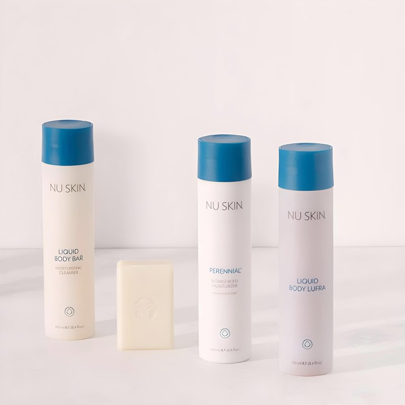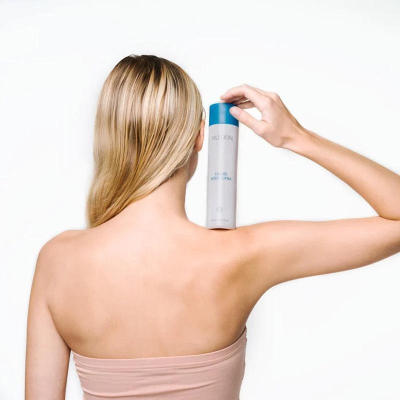 - Revitalizing Body Cleanser: Nu Skin Liquid Body Lufra uses finely ground walnut shells to gently exfoliate dead skin cells and excess oil, revealing a smoother, more radiant skin.