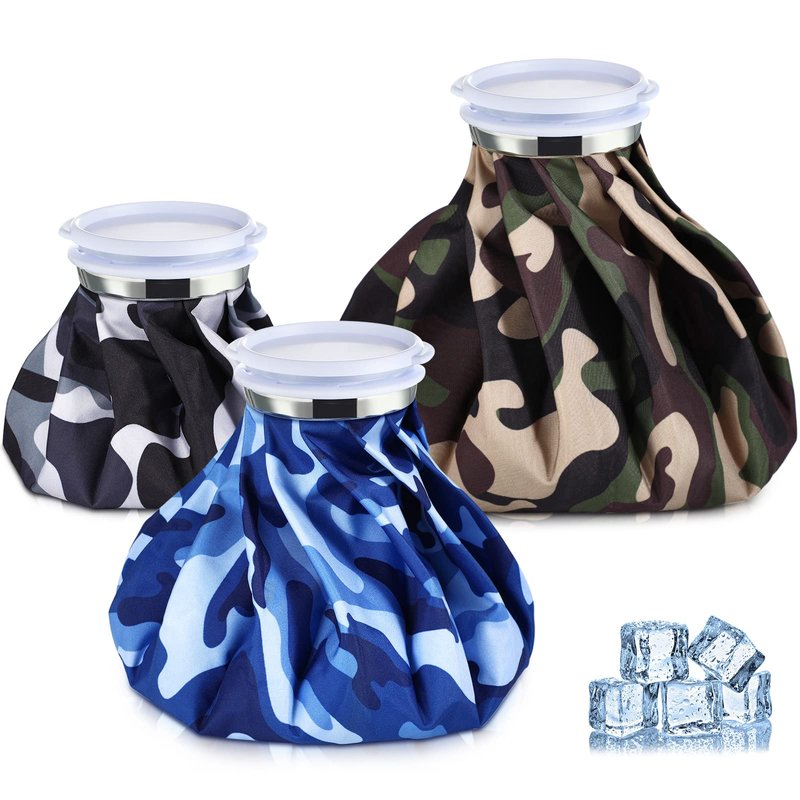 Nuanchu 3 Pieces Ice Bags for Injuries Reusable Ice Pack Hot Cold Water Bag 6 Inches, 9 Inches, 10 Inches Hot Cold Therapy and Pain Relief Pain Screw Top Bag for Sports Knee Head Leg(Camouflage Style)