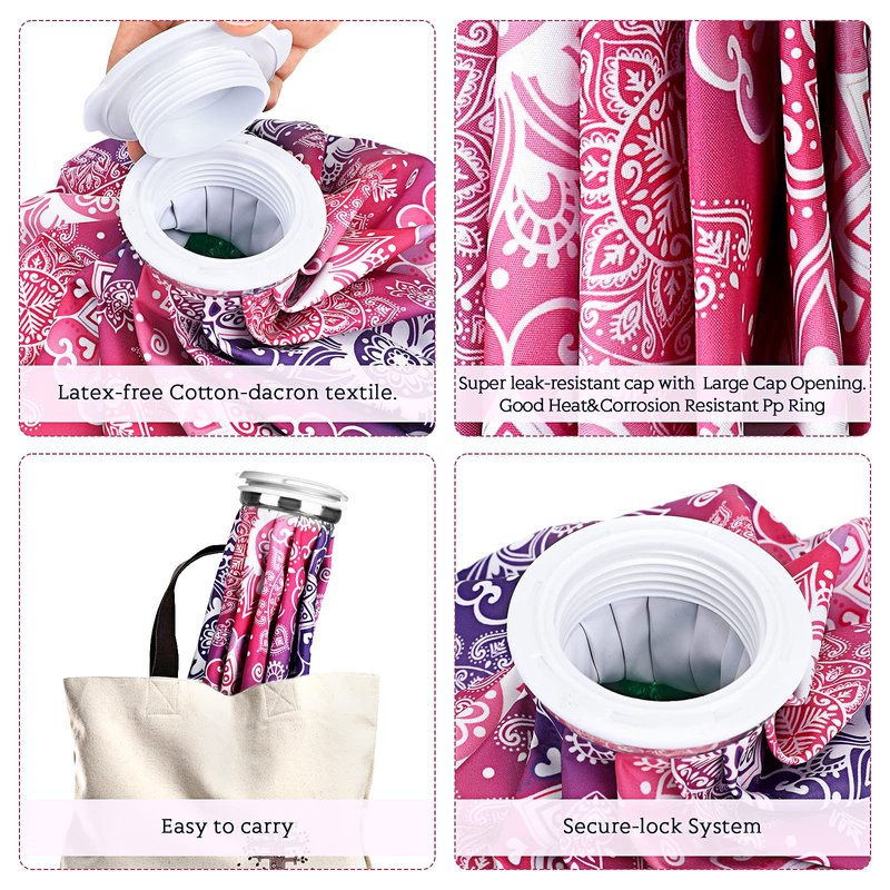 Nuanchu 3 Pieces Ice Bags for Injuries Reusable Ice Pack Hot Cold Water Bag 6 Inches, 9 Inches, 10 Inches Hot Cold Therapy and Pain Relief Pain Screw Top Bag for Sports Knee Head Leg(Datura Style)