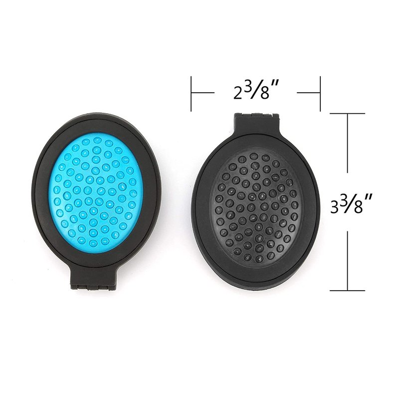 Each of the bestseller popup folding brush & mirror 2 pack set includes 1 hot pink mirror brush + 1 aqua blue pop up mini brush.