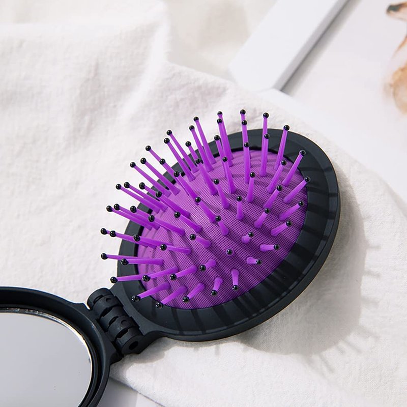 Equipped with a mini mirror & detangling bristles, our folding hairbrushes save the day by performing double duty!