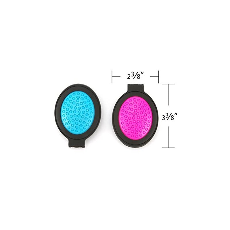 Each of the bestseller popup folding brush & mirror 2 pack set includes 1 hot pink mirror brush + 1 aqua blue pop up mini brush.