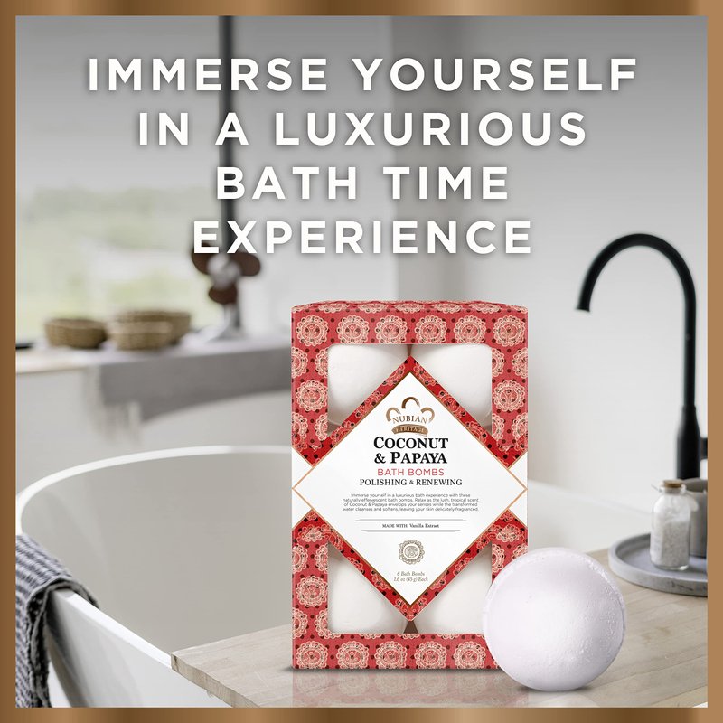 - Nubian Heritage Coconut and Papaya bath bombs are ideal for a relaxing bath experience. Infused with vanilla extract, this bath bomb creates a renewing atmosphere
