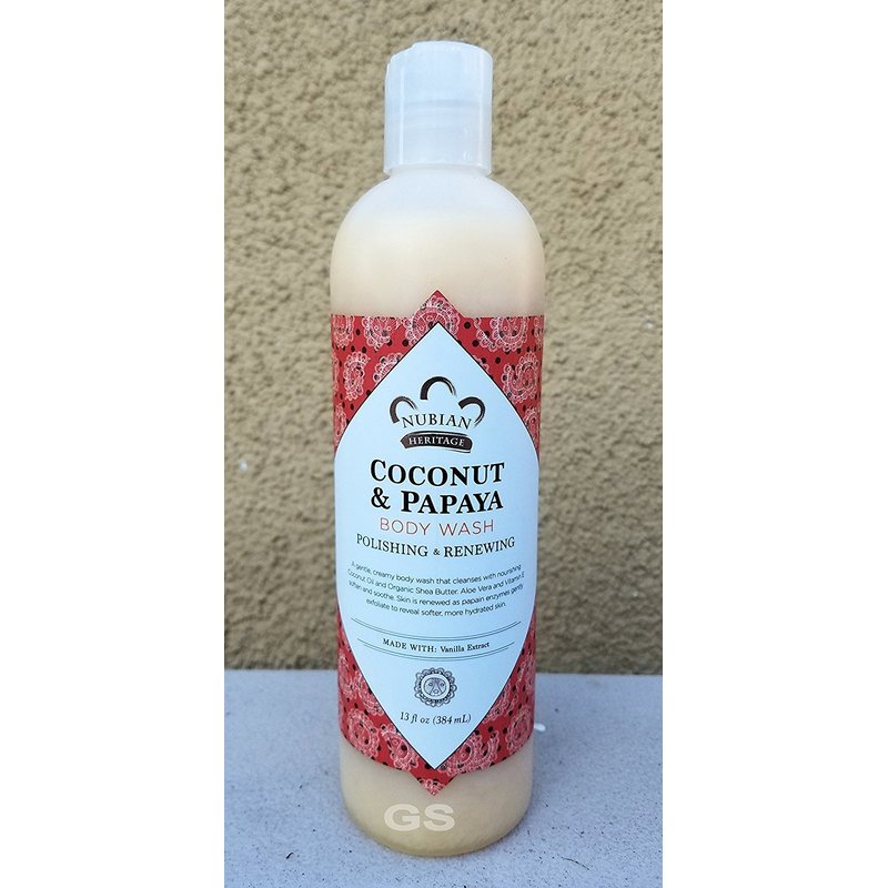 Body Wash (Coconut & Papaya) adds a tropical twist to your everyday skin care routine. Let the fresh, juicy scent of natural papaya transport your thoughts to a secluded beach while our organic coconut oil body wash cleanses and hydrates your skin. The coconut tree is a universal symbol of the tropics, and its fruit has been a staple of traditional healing for millennia. Our skin-loving formula combines certified organic shea butter with coconut oil and aloe for a juicy papaya body wash that rejuvenates and renews your skin's natural softness. Product details: Nubian Heritage is dedicated to maintaining the accuracy of the ingredient lists on this website. However, because raw ingredients listings are subject to change due to INCI, we cannot guarantee that these lists are complete, up-to-date and/or error-free. For an accurate listing of ingredients in each product, please refer to your product packaging. Usage instructions: Apply to washcloth or hands. Cleanse entire body. Daily use will result in healthier looking skin.