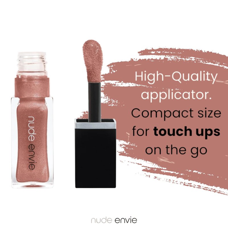 nude envie Lip Gloss - Certified Vegan Lipgloss Cruelty-Free and Paraben Free - Enriched Peptides, Vitamin E and Jojoba Oil (Peaceful)