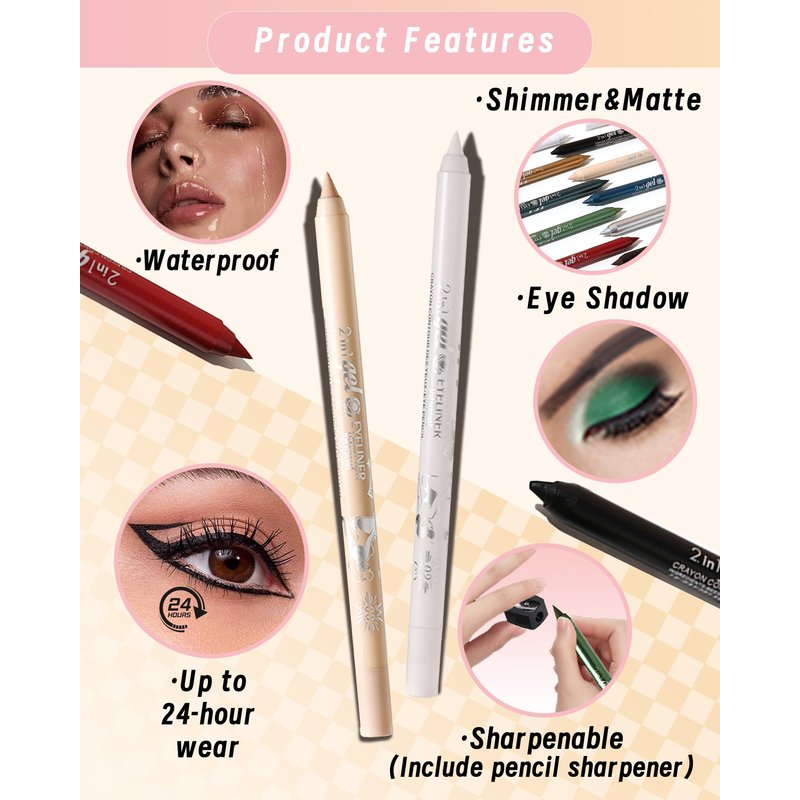 Nude Gel Eyeliner Pencil Set-2Pcs Multi-Use Gel Eye Liner waterline Pen,Long Lasting Waterproof Smudge-proof Water Line Pencil, Professional Eye Makeup Kit for Older Women with Pencil Sharpener-03