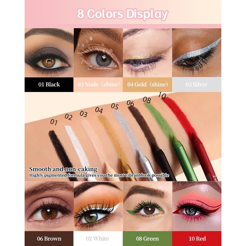 - Colourful Gel Eyeliner Pencils Set - Eight colors of eyeliner gel pencils, including pearl and matte. We offer you a two-pack of popular colors, a three-pack of combinations to match, and a pencil roller of your choice. You can use the eyeliner gel pens to enhance the dimension and glamour of your eyes, creating more varied and personalized makeup effects to meet the needs of different occasions and personal preferences.