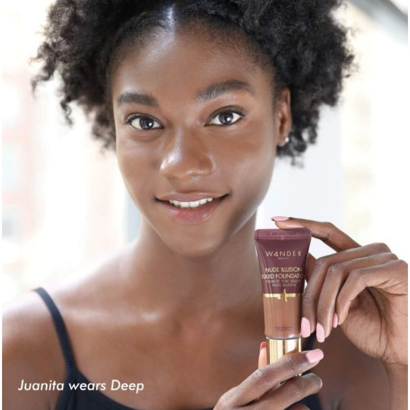 What it Does: This weightless liquid foundation delivers an undetectable finish that makes blemishes, redness and discoloration disappear. With buildable coverage, this foundation delivers a natural, radiant, skin-like finish. Designed in a travel-friendly tube with a doe-foot applicator to deliver multitasking coverage wherever you wander. 8-in-1 Multitasking Foundation: Delivers medium-to-full buildable coverage Can be applied and blended all over as foundation Is designed with a doe-foot applicator for targeted spot correcting and concealing Reduces the appearance of wrinkles and evens skin tone with niacinamide Balances sebum production and improves the elasticity of skin with lotus extract Can be used as contour; simply choose a shade 1-2 darker than your skin tone Can be used as concealer; simply choose a shade 1-2 lighter than your skin tone Has a tube that is perfectly portable and maximizes every last drop of the formula How to Use To use as nude foundation, use the doe-foot to apply from the center of the face outward. Blend with fingertips, beauty sponge, brush or tool of choice. For maximum coverage, swipe doe-foot all over face and buff onto skin from the center of the face outwards. To target imperfections, dab doe-foot precisely and directly onto skin and blend. For customized coverage, squeeze the tube slightly and mix with face oil or moisturizer for a look that’s all your own.