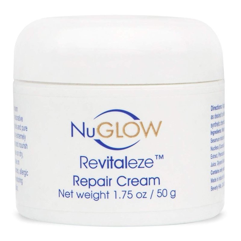 NuGlow Revitaleze Repair Cream combines a proprietary blend of Ayurvedic restorative herbs and plant-based nutrients with replenishing oils and MSM. This moisture-intense formula restores and nourishes dry, damaged, aged and troubled skin. Product Size: 1.75 oz NuGlow Inc. is a specialty skincare company that is committed to helping people live a healthy life beautifully. The company was founded on the principle of providing customers with high-quality anti-aging skincare products and service at affordable prices!