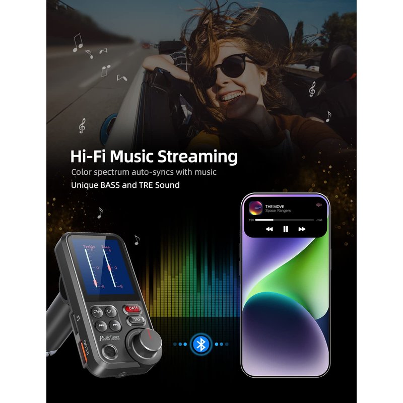 - 【Treble & Bass Music Streaming】: You can stream music directly from your car radio via Bluetooth / microSD card / Aux out, and enjoy free switching between treble and bass mode, the color spectrum auto-syncs with your music.