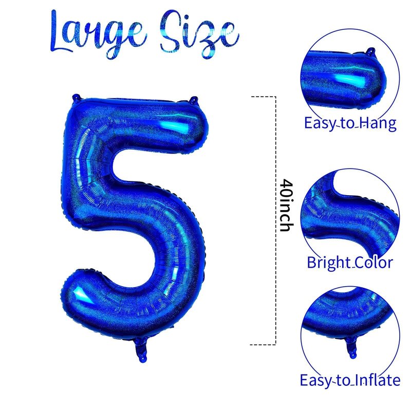 - Number 5 Balloon :This 40-inch number 5 foil balloon is a great choice for your 5 birthday celebrations. It's huge in size and features beautiful and unique laser visuals, and its unique laser blue design makes it an eye-catching highlight at parties, adding a lively vibe to your scene.