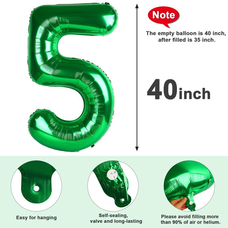 Number 5 Balloon Dark Green 40 Inch for Boy Girl Birthday Party Decorations, Five Year Old Number Balloons Party Supplies