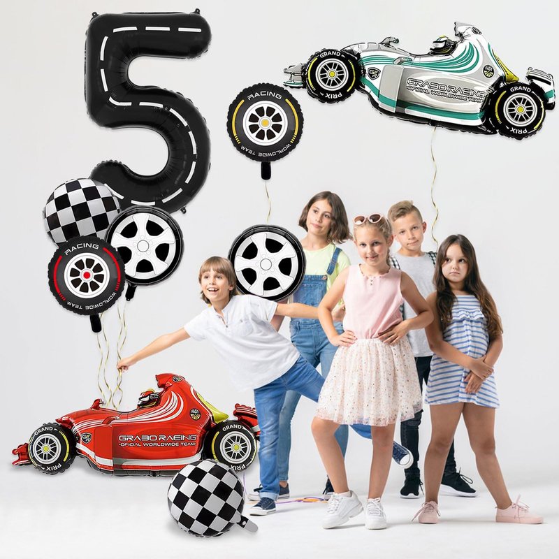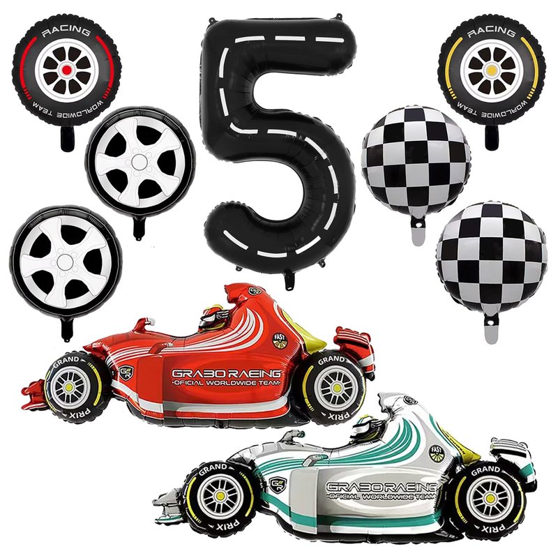- PACKAGE INCLUDES - You will get 9 giant size race car balloons - 2pcs F1 racing balloons, 2pcs racing tires balloons, 1pc number 5 balloon, 2pcs sports car tires balloons, 2pcs racing checkered balloons, as well as straw and ribbon. Large sizes and sufficient quantity can meet your party decoration