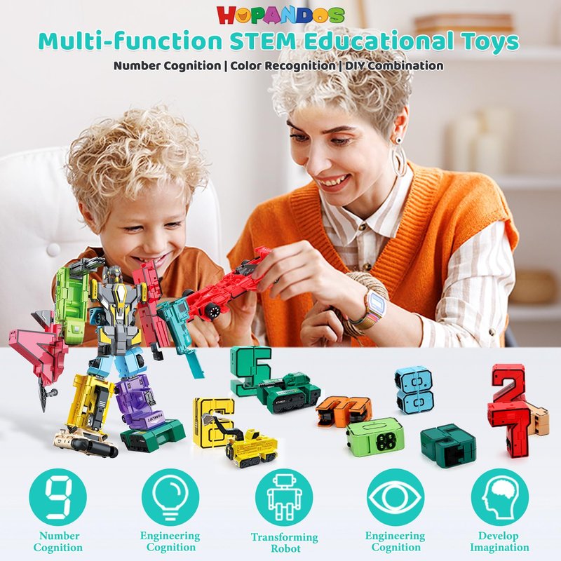 Number Bots Toys for Kids, Number Blocks Toys 10 in 1 DIY 12.3Inch Alphabet Transformering, Toddlers Education Math Autism STEM Toys, Carnival Prizes Christmas Halloween Birthday Gifts for Boys 3 4 5