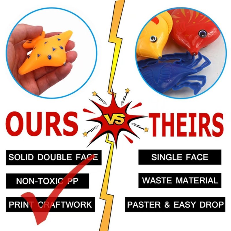 - Bath fish toys,classical funny simple games, kids play in the bathtub when bathing, teaching your baby to recognize a variety of ocean sea animals through playing.