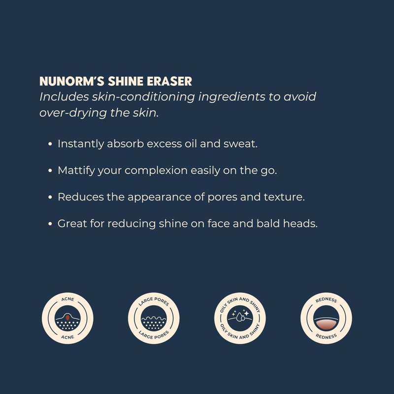 - Achieve a shine-free complexion with NuNorm's Shine Eraser. This pressed powder is expertly formulated to cater specifically to men's skin, offering multiple benefits in one convenient product.