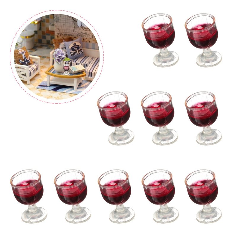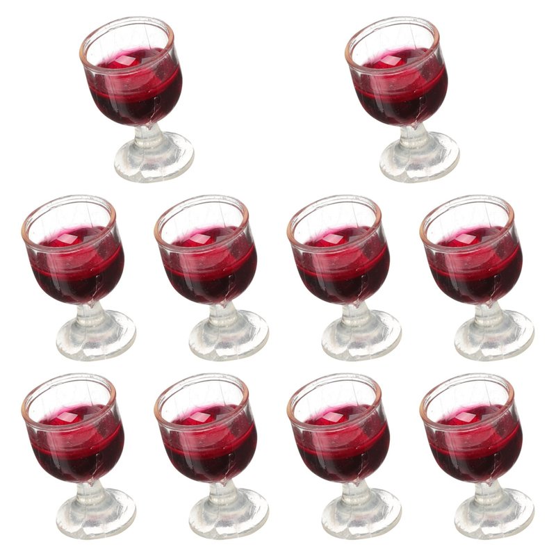 NUOBESTY 10Pcs 1: 12 Wine Glasses Dollhouse Cocktail Glasses Mini Red Wine Drink Cups for Dollhouse Decors Kitchen Accessories Miniature Wine Glasses Miniature Goblet