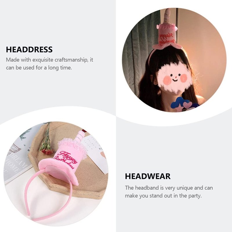 NUOBESTY Happy Birthday Cake Headband Cupcake Hairband Headpiece Hair Band Party Pink Hair Hoop Decorations Photo Props Birthday Head Tiara Hair Accessories for Birthday Party Costume