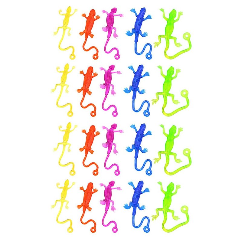 - Stretchy Sticky Lizards Toys: Each lizard measures 5. 7 inches. Lizards have well- defined shapes. A kind of gooey, stretchable little toy that is fun to play with and a favorite toy for kids. Just throw it out and it sticks firmly to the glass.
