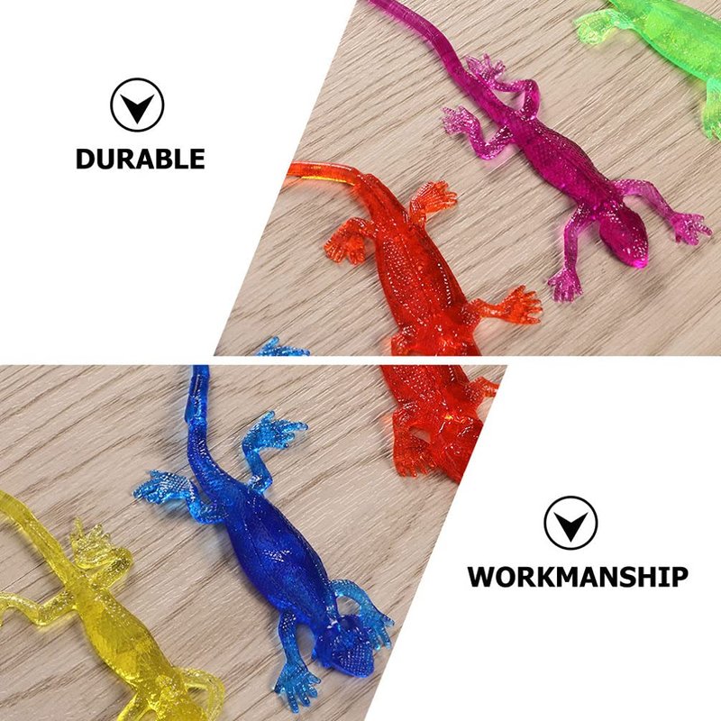 - 🦎Stretchy Sticky Lizards Toys: Each lizard measures 5. 7 inches. Lizards have well- defined shapes. A kind of gooey, stretchable little toy that is fun to play with and a favorite toy for kids. Just throw it out and it sticks firmly to the glass.
