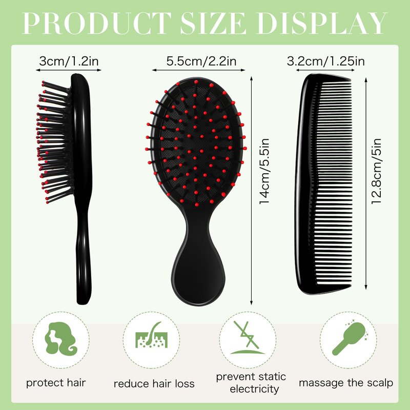 - Smooth and Neat Hair: the portable hair brushes, about 5.51 x 2.36 x 1.57 inches in size, are nice for managing knots and tangles; The wide hair comb, with dimensions of about 5.08 x 1.34 inches, ensures wide coverage and easy styling; Balanced sizes provide appropriate grip and control over hairstyling