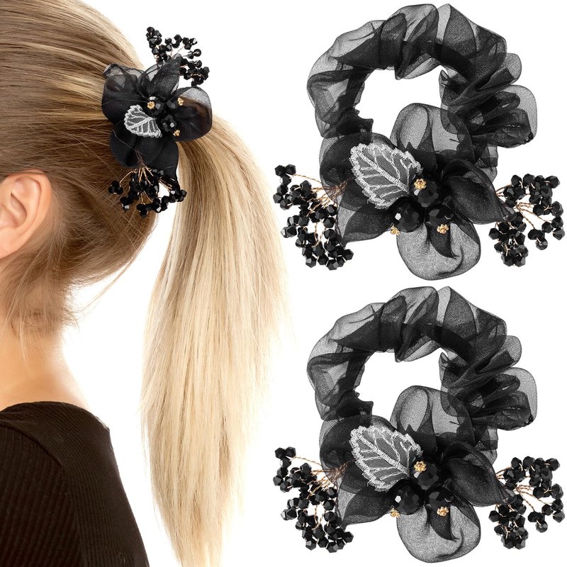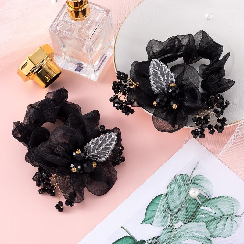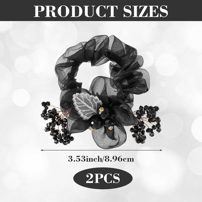 - Package Include - You will get 2 pcs mesh flower elastic hair scrunchies. Elegant black mesh rhinestones hair ties are suitable for women and girls.