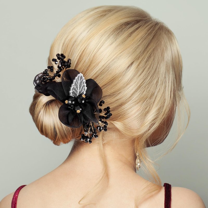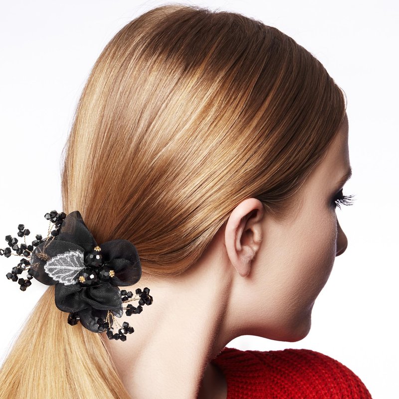 - Exquisite Mesh Flower Hair Ties - The hair band is made of high quality elastic hair tie, wraped in organza fabric, embellished with acrylic beads, gold metal flower and embroidered leaf. The acrylic faceted beads are fixed by metal wire which is flexiable when you move. Reliable, beautiful and fashionable decorative hair accessories for you.