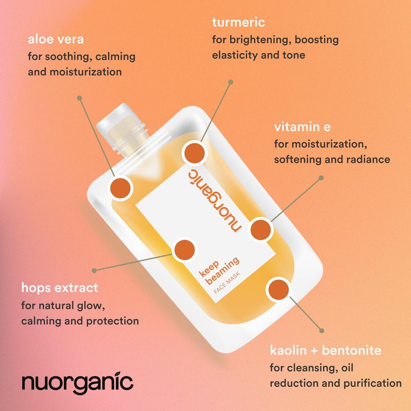 nuorganic Turmeric Face Mask - Soothing, Acne Clearing, Pore Refining, Exfoliating - New Airtight Squeezy Tube, Stays Fresh for 12 Months - Clean & Natural
