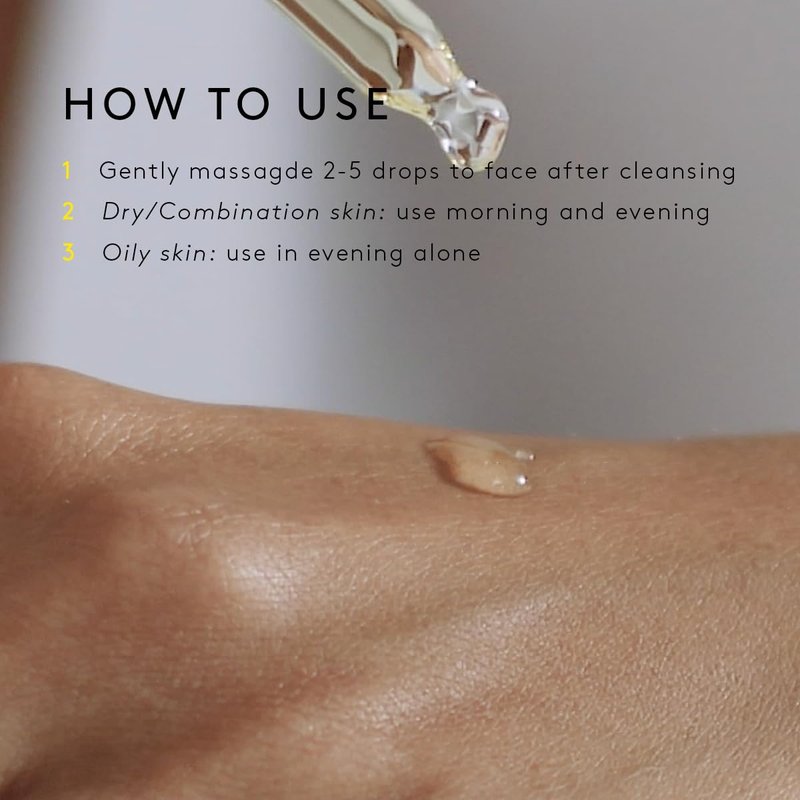 - HOW TO USE: Gently massage two to five drops to face and neck after cleansing. Dry/combination skin: Use morning and evening under your preferred NUORI moisturizer. Oily skin: Use in evening alone.