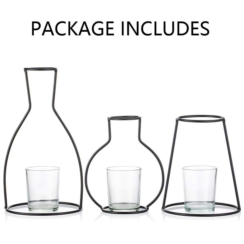 - PACKAGE INCLUDES: 3 pcs Iron Vases comes with 3 glasses. Note: Flowers are not included. The frame has circle at the top, the wire would keep flower stems upright.
