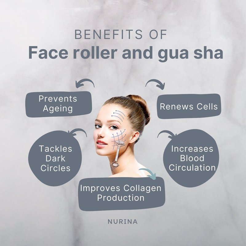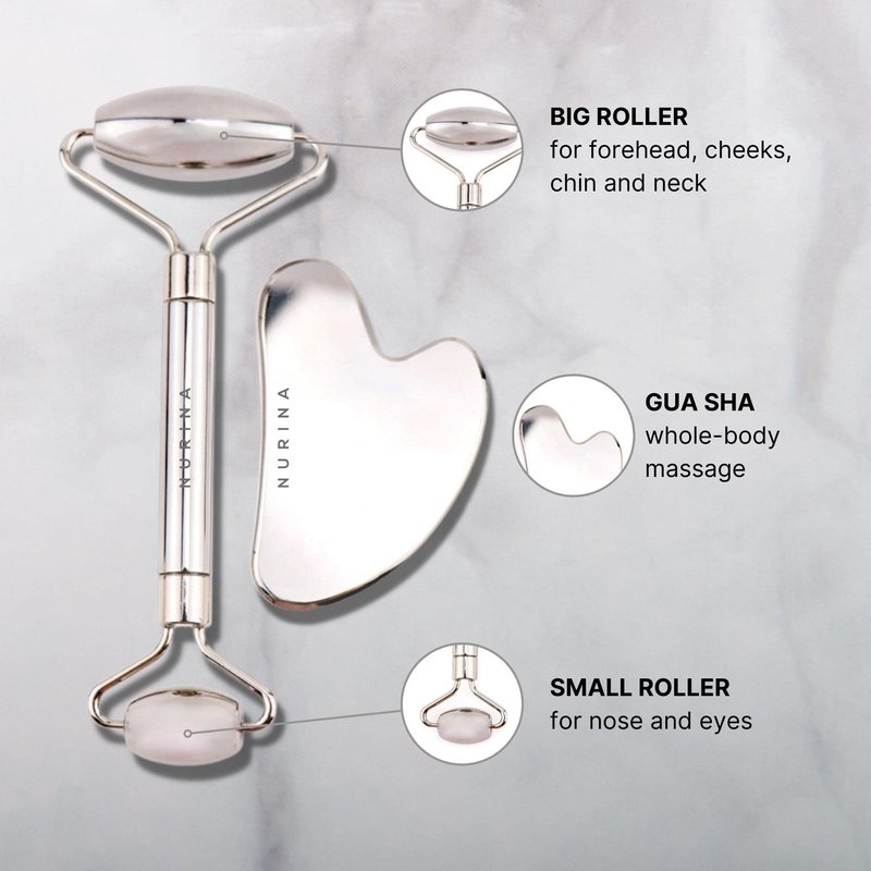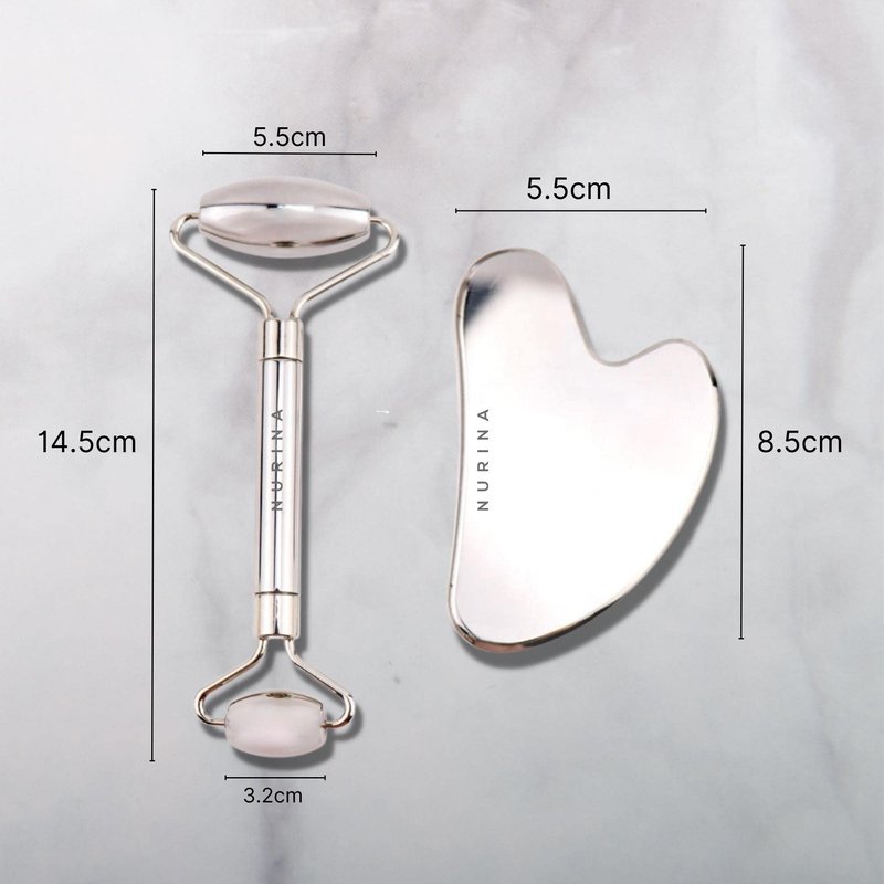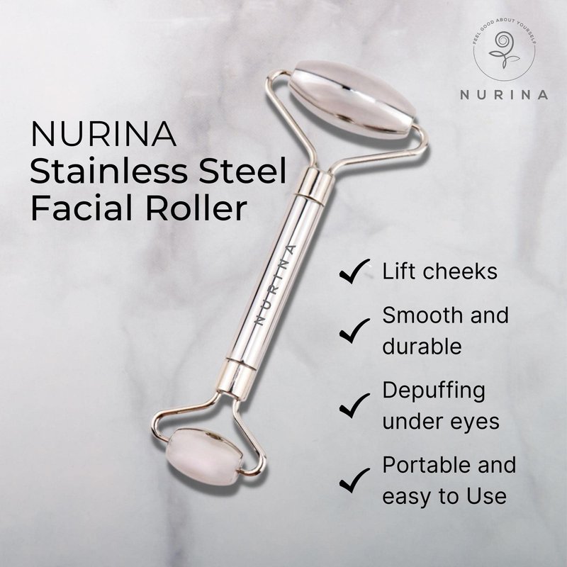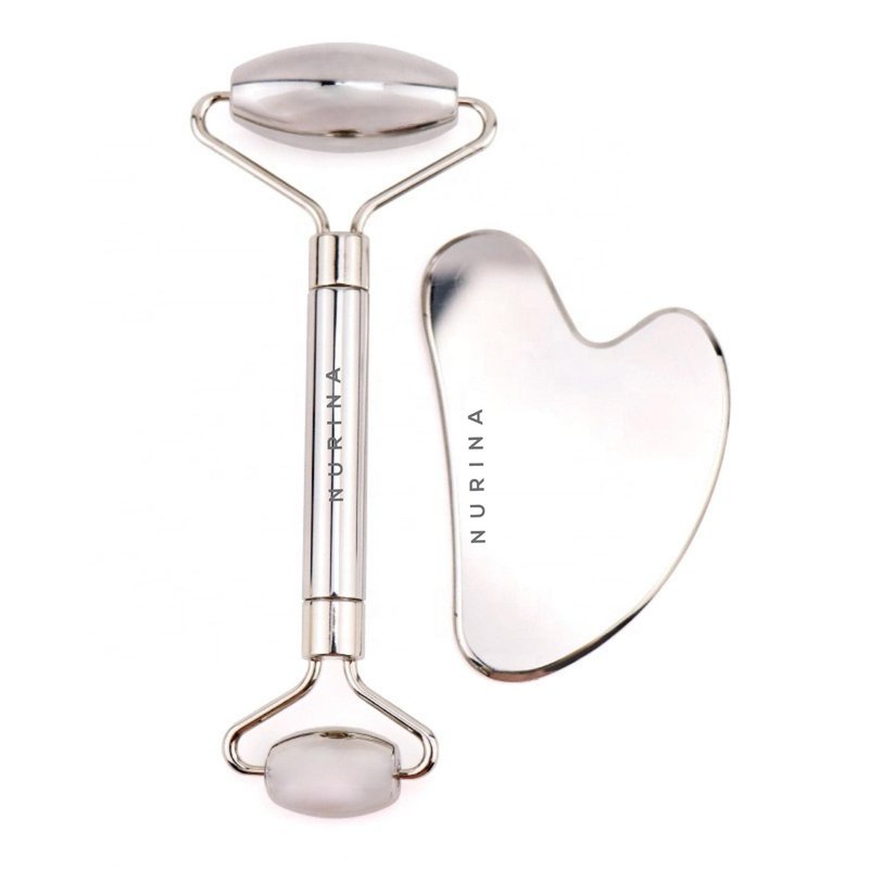 - Stainless Steel Facial Roller & Gua Sha Kit – NURINA is taking the lead by bringing you this upgraded and improved superior-quality stainless steel facial roller and Gua Sha kit for intensifying your skincare routine. Face roller massager is not hollow from inside which makes it much more effective and helps make rolling process smooth. Steel frame and body is 100% rust, corrosion, stain proof and shatterproof.