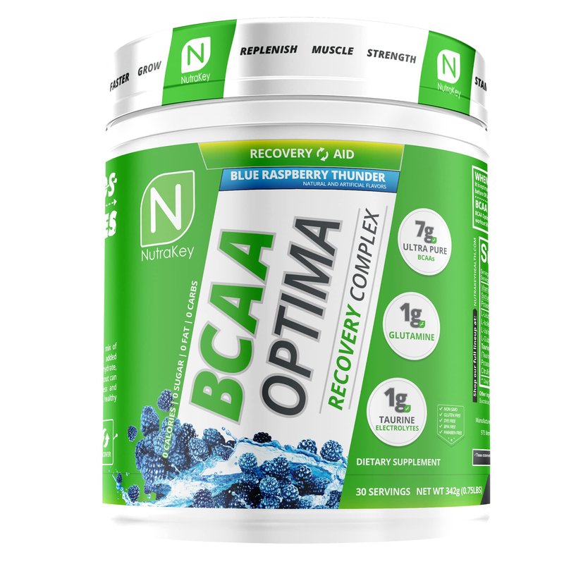 NutraKey BCAA Optima Post Workout Recovery Complex, No Sugar, No Carb, Recovery Aid, Blue Raspberry
