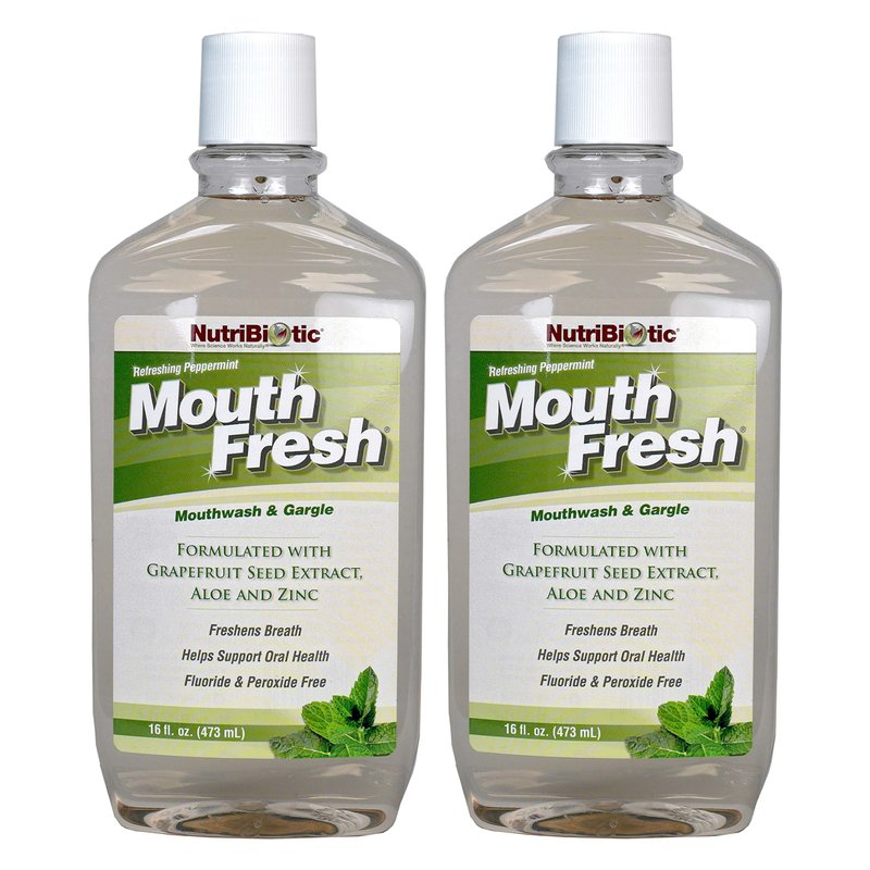 NutriBiotic MouthFresh, Refreshing Peppermint 16 Oz. Twin Pack | Natural Mouthwash & Gargle with Grapefruit Seed Extract, Aloe, Zinc & Witch Hazel | Fluoride-Free & Made Without GMOs & Gluten