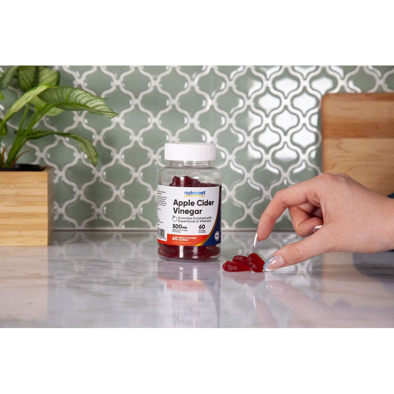 Apple Cider Vinegar 500mg gummies by Nutricost are apple flavored and only use high quality ingredients. Each batch is tested for quality and by independent iso-accredited laboratories. Each serving contains 500mg of apple cider vinegar. They are non-gmo, gluten free, no corn syrup, preservative free, and do not use artificial sweeteners.*