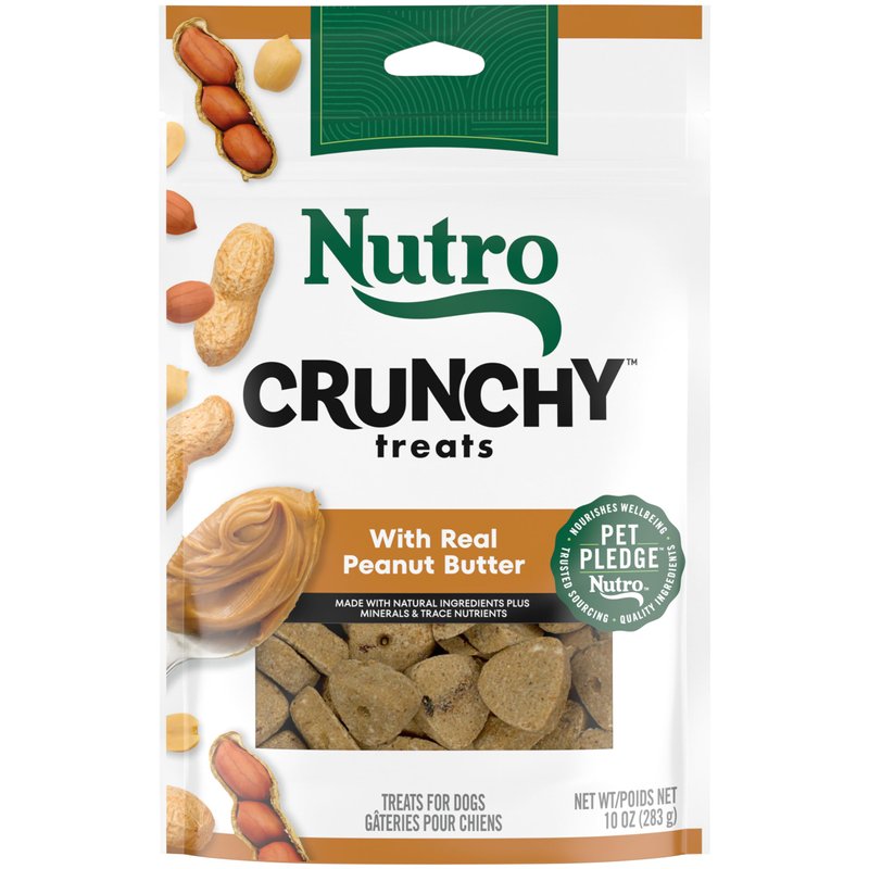 - Contains one (1) 10 oz. Bag of Nutro Crunchy Dog Treats With Real Peanut Butter.