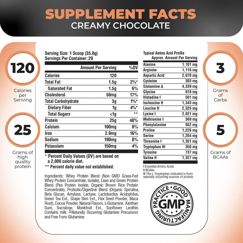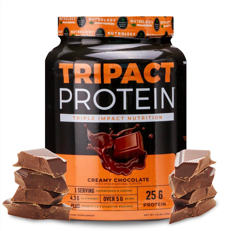 - Triple Impact Chocolate Protein Powder: TRIPACT Protein offers a premium protein blend sourced with high-quality grass-fed whey protein powder concentrate and isolate combined with pea protein powder, rice protein powder, and a dynamic profile of Essential Amino Acids including BCAAs.
