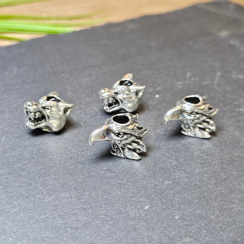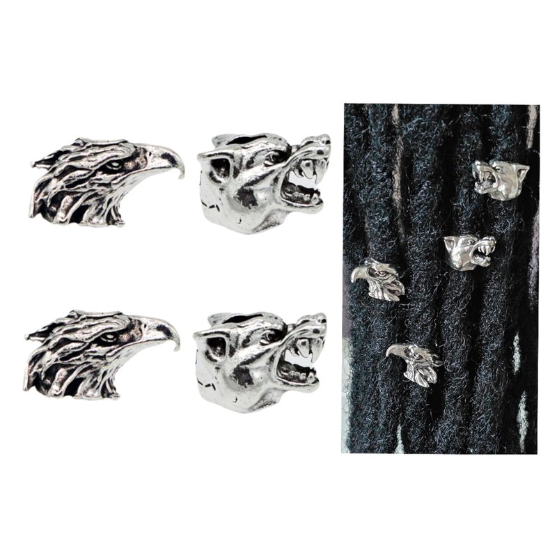 4PCS Eagle and Hound Hair Tube Beads, Beard Bead Coils, Viking Hair Jewelry for Beards, Hair and Dreadlocks. Meticulously crafted with attention to detail, these high-quality alloy beads offer elegance and rugged charm. Suitable for all hair types and styles, they add an enchanting touch to majestic beards, braids, or dreadlocks. Easily bend and adjust them to create your desired look and experiment with different arrangements. Perfect for being a Norse inspired gift! Length: 0.6in, Inner hole diameter: 0.3in
