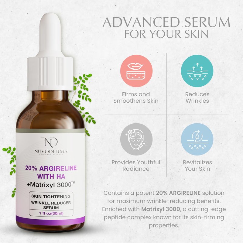 - The Right Choice for Your Beauty Regimen: The Nuvoderma matrixyl and argireline serum is one of the most revolutionary skincare products available, providing excellent anti-aging action for tighter, smoother skin.