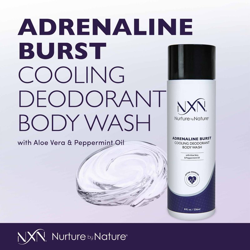 NXN Adrenaline Burst Cooling Deodorant Post Workout Body Wash Natural & Organic Formula with Peppermint Oil & Aloe Vera, 8 Fl Oz