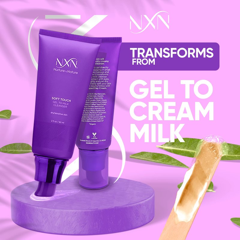 NXN Gel-to-Milk Facial Cleanser - Gentle, Daily Face Wash, For Hydrating Dry and Sensitive Skin, Fresh Scent, 2 Fl Oz