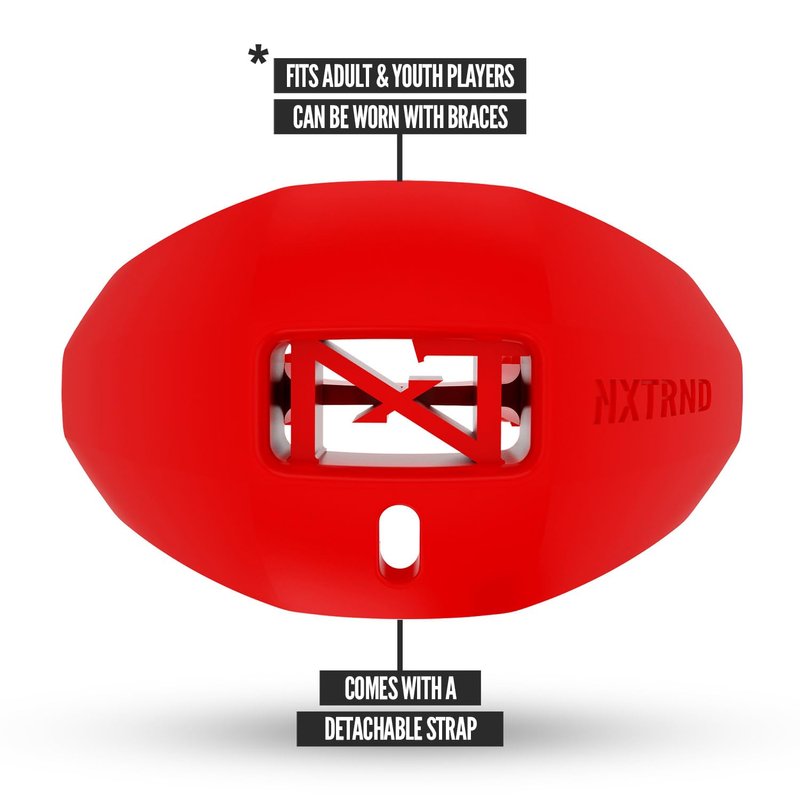 Nxtrnd One Football Mouth Guard, Strap Included, Fits Adult & Youth (Red)