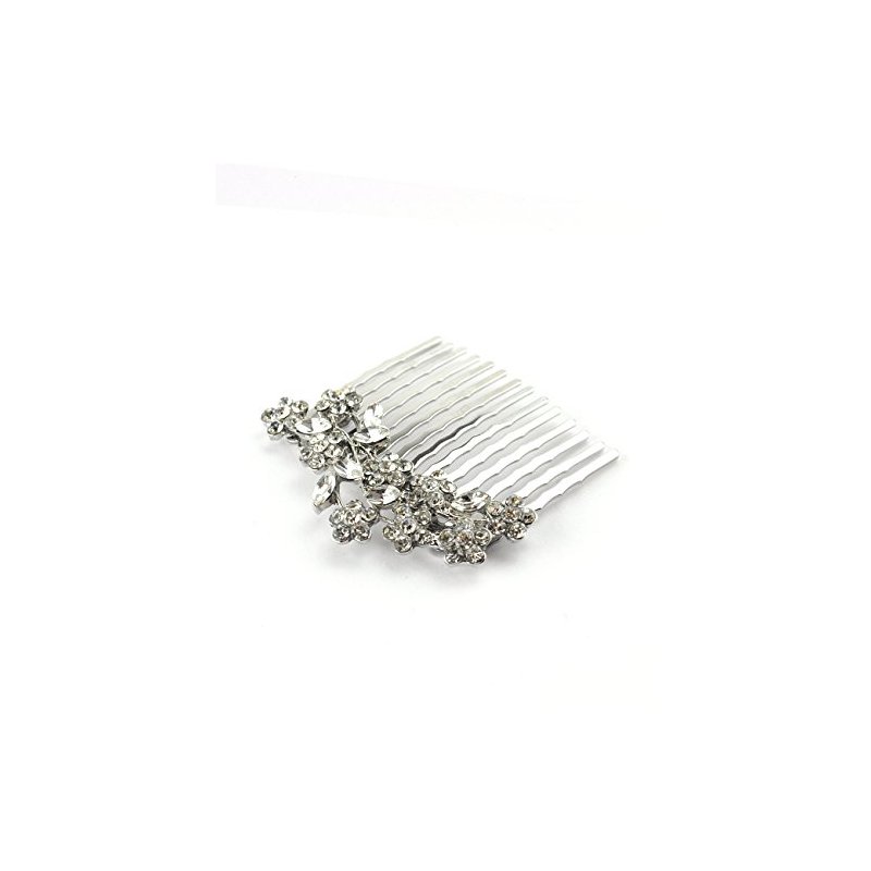 NYFASHION101 Women's Elegant Bridal Rhinestone Flower Pattern Hair Comb HC4180, Silver-Tone