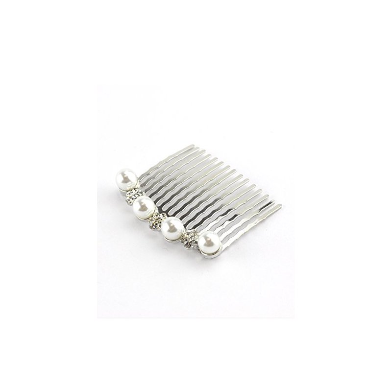 NYFASHION101 Women's Elegant Bridal Rhinestone Flower Pattern Hair Comb HC4330, Simulated Pearl, Silver-Tone