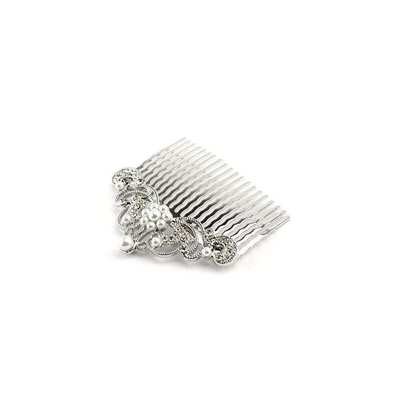 NYFASHION101 Women's Elegant Bridal Rhinestone Tiara Pattern Hair Comb HC4300, Simulated Pearl, Silver-Tone